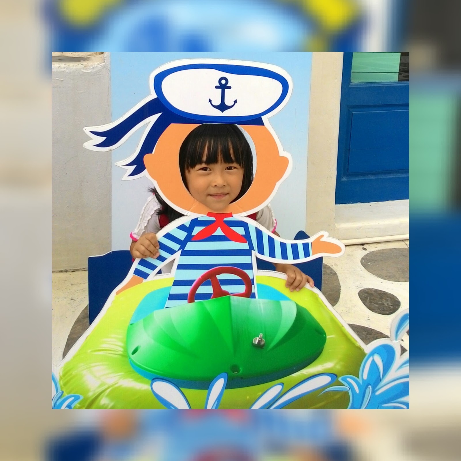 Nah... yang unik di Santorini Park ini sebenernya dinding-dindingnya... soalnya dindingnya itu di dekor... diciptakan memang buat foto-foto. Sayangnya ada beberapa jalan dan bangunan disini lagi ditutup karena sedang dalam perbaikan.